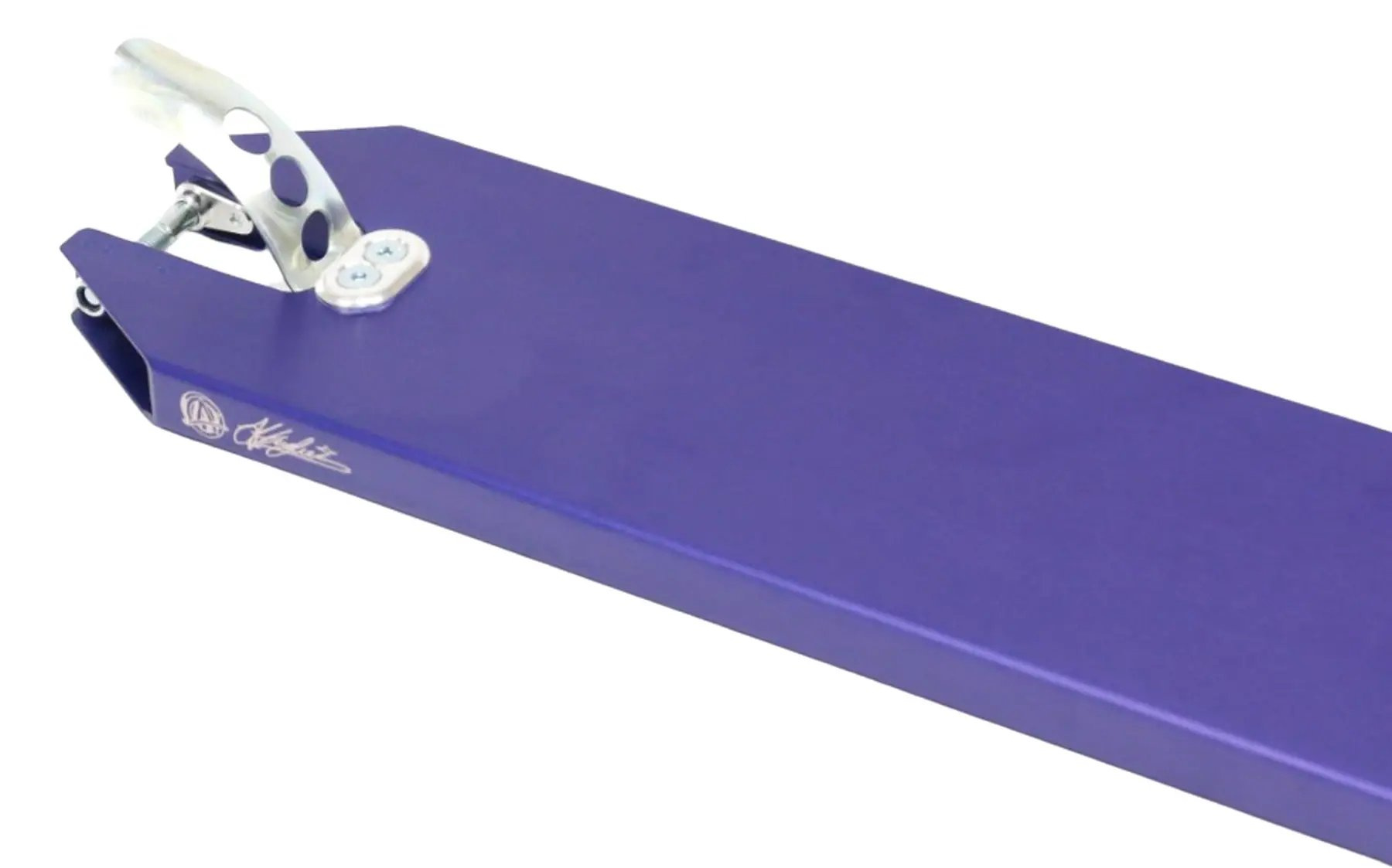 Představujeme koloběžkovou palubu Apex Angus Hughes Signature V3 Pro, dokonalou jízdu pro milovníky koloběžek! Tento deck o šířce 5" a délce 49 cm poskytuje optimální kontrolu a stabilitu. Je vyrobena z prvotřídního hliníku řady 6000 s úpravou třídy T6 a může se pochlubit výjimečnou odolností a pevností. Tvar Peg-cut dropout a úhel hlavové trubky 82,5 stupně zajišťují přesné ovládání a maximální odezvu. Zažijte bezkonkurenční výkon a styl s profesionální koloběžkovou deskou Apex Angus Hughes Signature V3, která je ideální volbou pro středně pokročilé až pokročilé jezdce, kteří hledají to nejlepší mezi profesionálními koloběžkovými deskami.