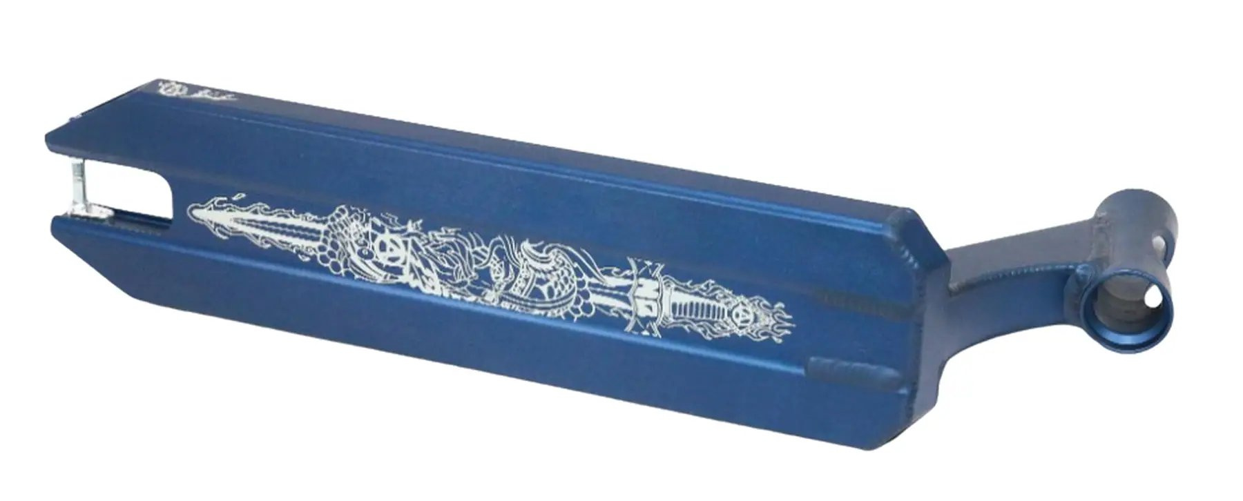 Palubní deska Apex Nils Qvarford Signature Pro Scooter Deck se dodává s potahem v novém výrazném tmavě modrém barevném provedení a s vlastní laserem vyleptanou grafikou s motivem Vikinga, která ji odlišuje od ostatních. Díky šířce paluby 5 palců a délce 19,3 palce nabízí tato paluba dostatek prostoru pro umístění nohou a ovládání, takže je vhodná pro jízdu v parku i na ulici.