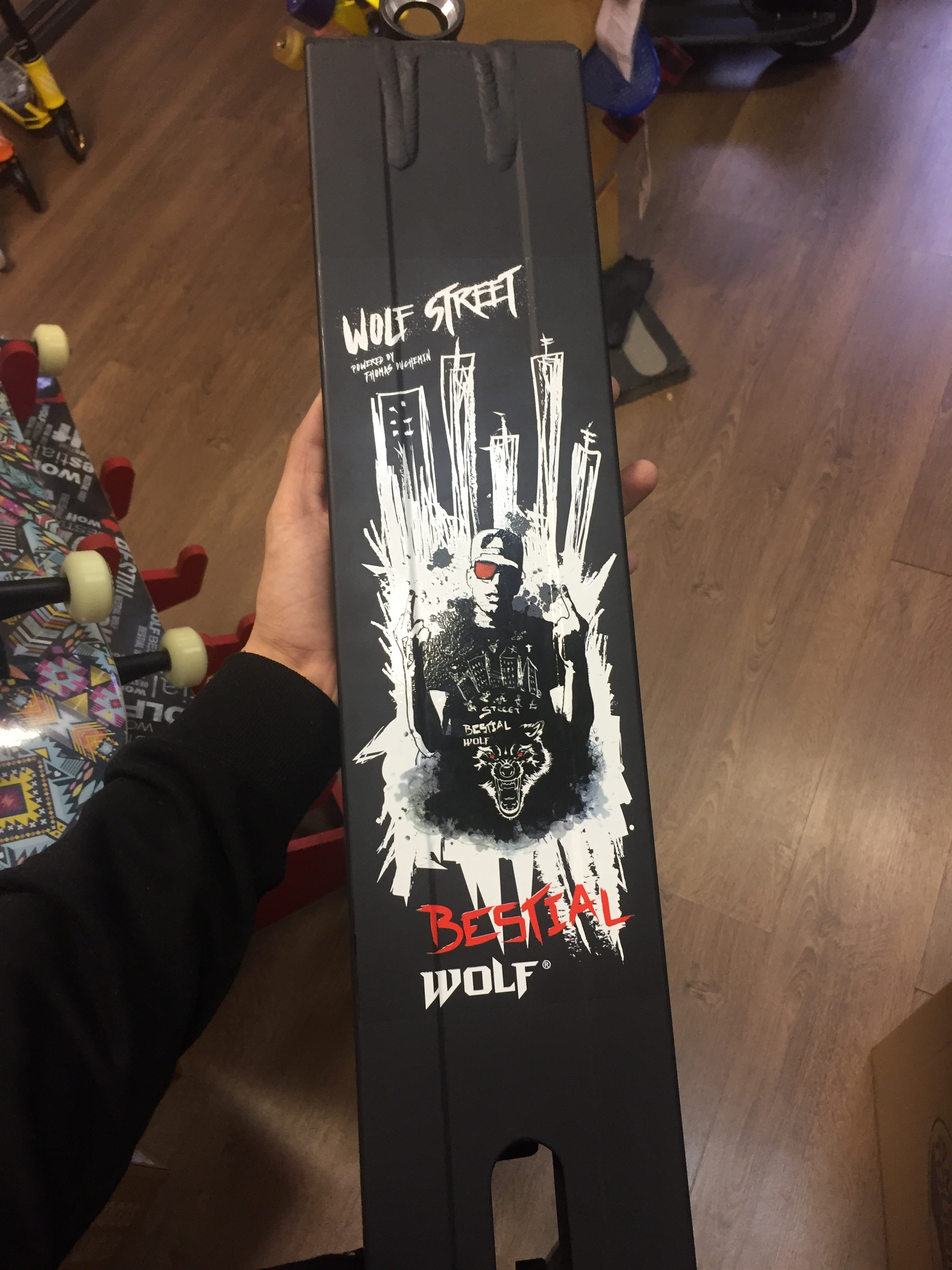 Co se týká nové Bestial Wolf Street desky tak jen potvrzuji to co napsal Kuba až na to, že jsem deku nechal v původní délce 56cm. Za mě je to snad nejlepší deska kterou jsem kdy jezdil. Jízdních vlastností, velikost a váha je až k neuvěření a myslím si zme deska patří mezi jedny z nejlepších na světě. Největší výhodou jsou pro mě boxends a obrovská šířka desky. I když se jedna na první pohled o street desku neznamená to že by nebyla jezditelná v parky, což vám mužů dokázat jelikož park jezdím stejně tak hodně jako street a mužů s deskou dělat co mě napadne, takže za mě mužů jen doporučit!!!