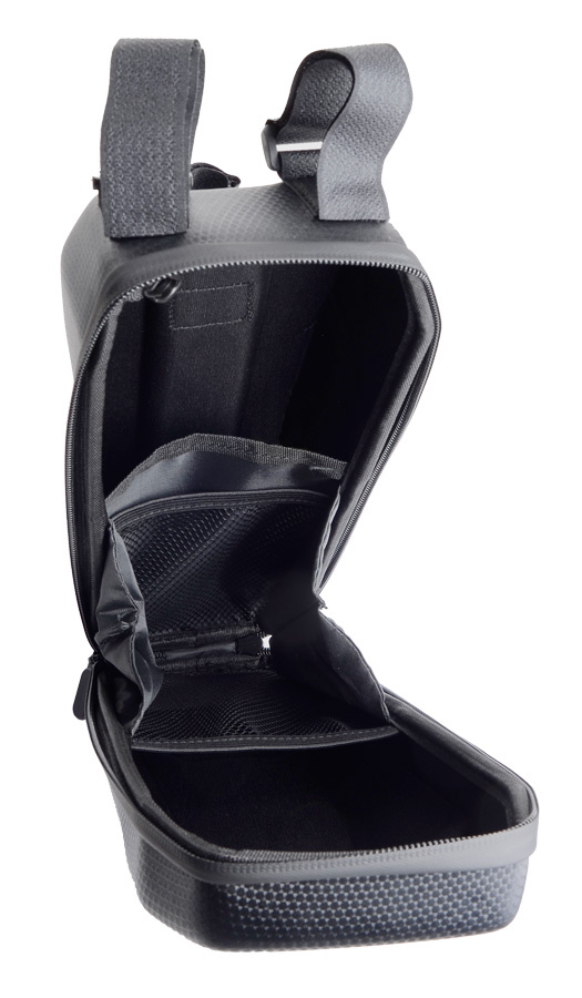 Brašna na koloběžku je vhodná pro úschovu drobných věcí jako je nabíječka, mobilní telefon, zámek, nářadí či lehká bunda. Uvnitř brašny se nachází organizer se 4 kapsami.