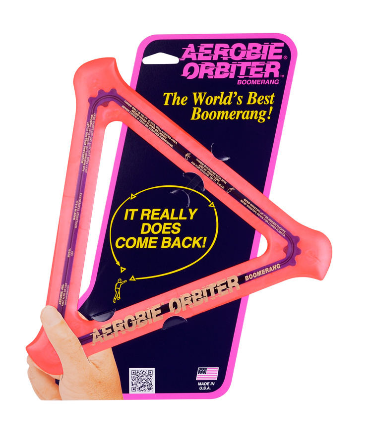 Uletí okruh cca 28 m a vrátí se zpět. Má unikátní trojúhelníkový tvar s měkkými a pružnými okraji, takže se lehce a příjemně chytá. Díky jeho zářivým barvám je bumerang Aerobie Orbiter dobře viditelný během celého letu.