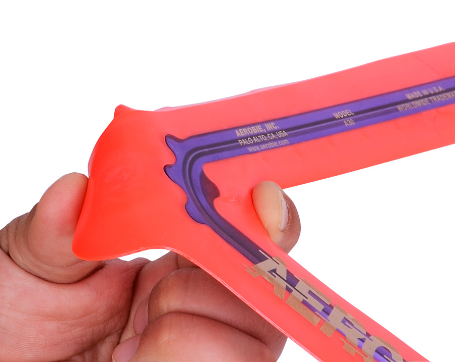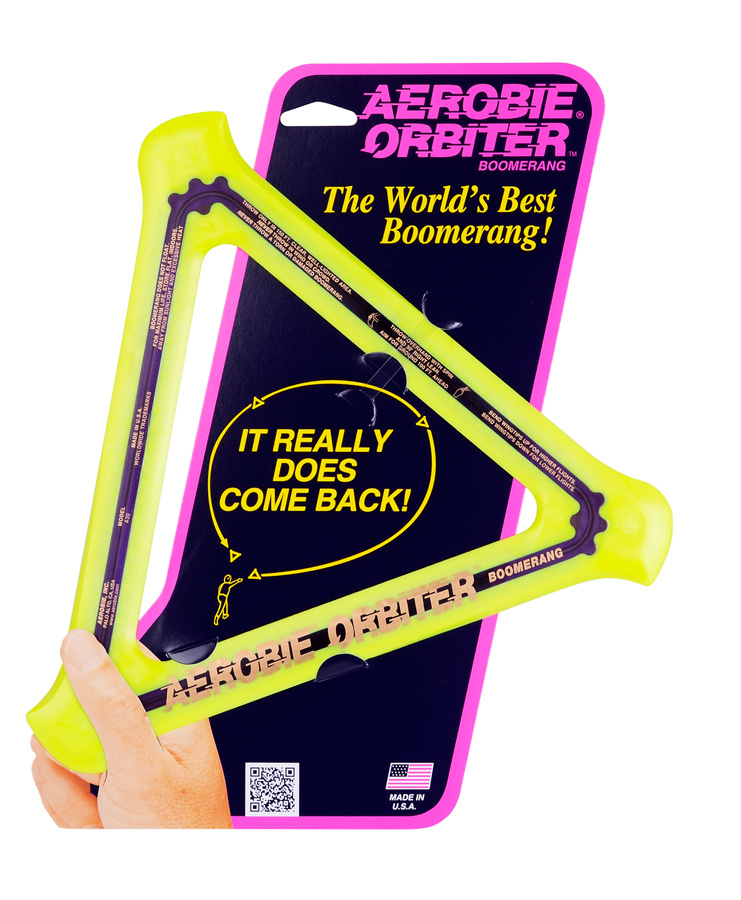 Uletí okruh cca 28 m a vrátí se zpět. Má unikátní trojúhelníkový tvar s měkkými a pružnými okraji, takže se lehce a příjemně chytá. Díky jeho zářivým barvám je bumerang Aerobie Orbiter dobře viditelný během celého letu.