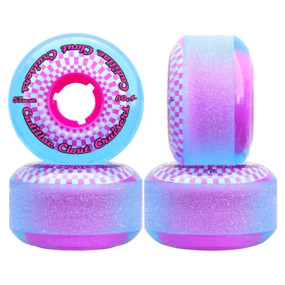 Kolečka Clout pro skateboard od značky Cadillac v balení se 4 ks jsou perfektní pro cruiser skateboardy a skateboardy. Tato kolečka jsou vyrobená z kvalitního uretanu, mají dlouhou životnost a jsou postavená pro akční a odhodlané jezdce. Velká kolečka s průměrem 57mm mají skvělé vlastnosti pro rampy a u-rampou inspirované skateparky, kde potřebujete rychlost, abyste v rampách nabrali dostatečnou výšku.