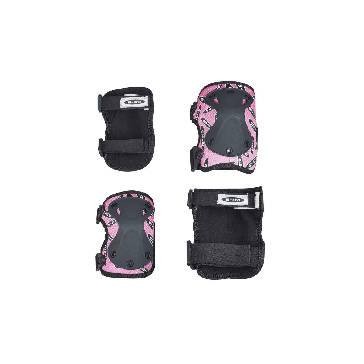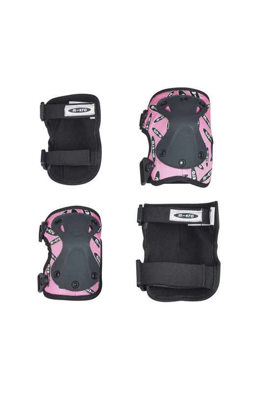 Dětské chrániče kolen a loktů v růžové barvě s černým logem značky Micro. Chrániče pomáhají zabránit zbytečným nárazům a odření. Pro přesné nastavení velikosti jsou chrániče vybaveny popruhy se suchým zipem. Tyto nastavitelné pásky spolu s textilní prodyšnou elastickou membránou zajistí, že chránič bude dobře držet. Vylepšený systém zaklapnutí umožňuje rychlejší nasazení chrániče, bez nutnosti nového nastavení suchého zipu. Vnější prémiový tvrzený plast je navržen tak, aby houževnatý a trvanlivý. Je také anatomicky tvarován pro příjemné používání. Komfort při používání, ale i při pádu zaručuje vnitřní silné polstrování.
