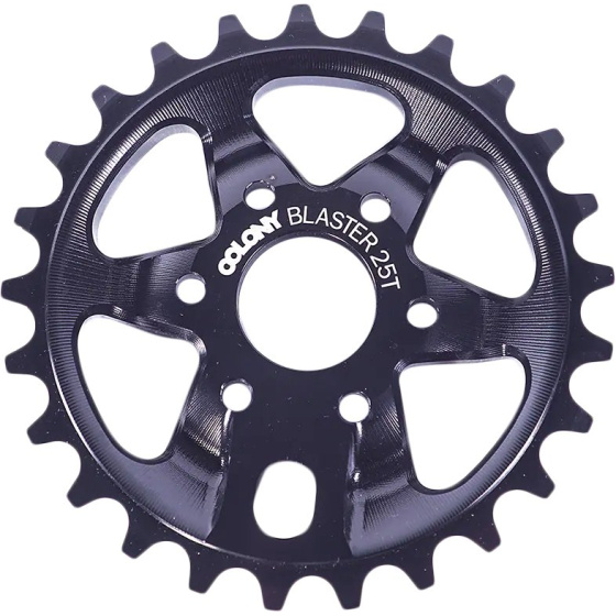Colony Blaster Chris James je výkonný BMX převodník pro freestyle kola. Dostupný ve verzích 25T a 28T. Pokud chcete dosáhnout vyšších maximálních rychlostí, vyberte si větší převodník s více zuby. Pokud však chcete snadnější šlapání a lepší akceleraci, pak byste měli zvolit menší převodník. Počet zubů ovlivňuje hmotnost převodníku - méně zubů znamená lehčí převodník a naopak. Pokud tedy hledáte nízkou hmotnost, vyberte si převodník s menším počtem zubů. Tento Colony převodník je navržen se středovou dírou 24 mm a obsahuje adaptéry pro osu 19 mm a 22 mm pro snadné a téměř univerzální nasazení.