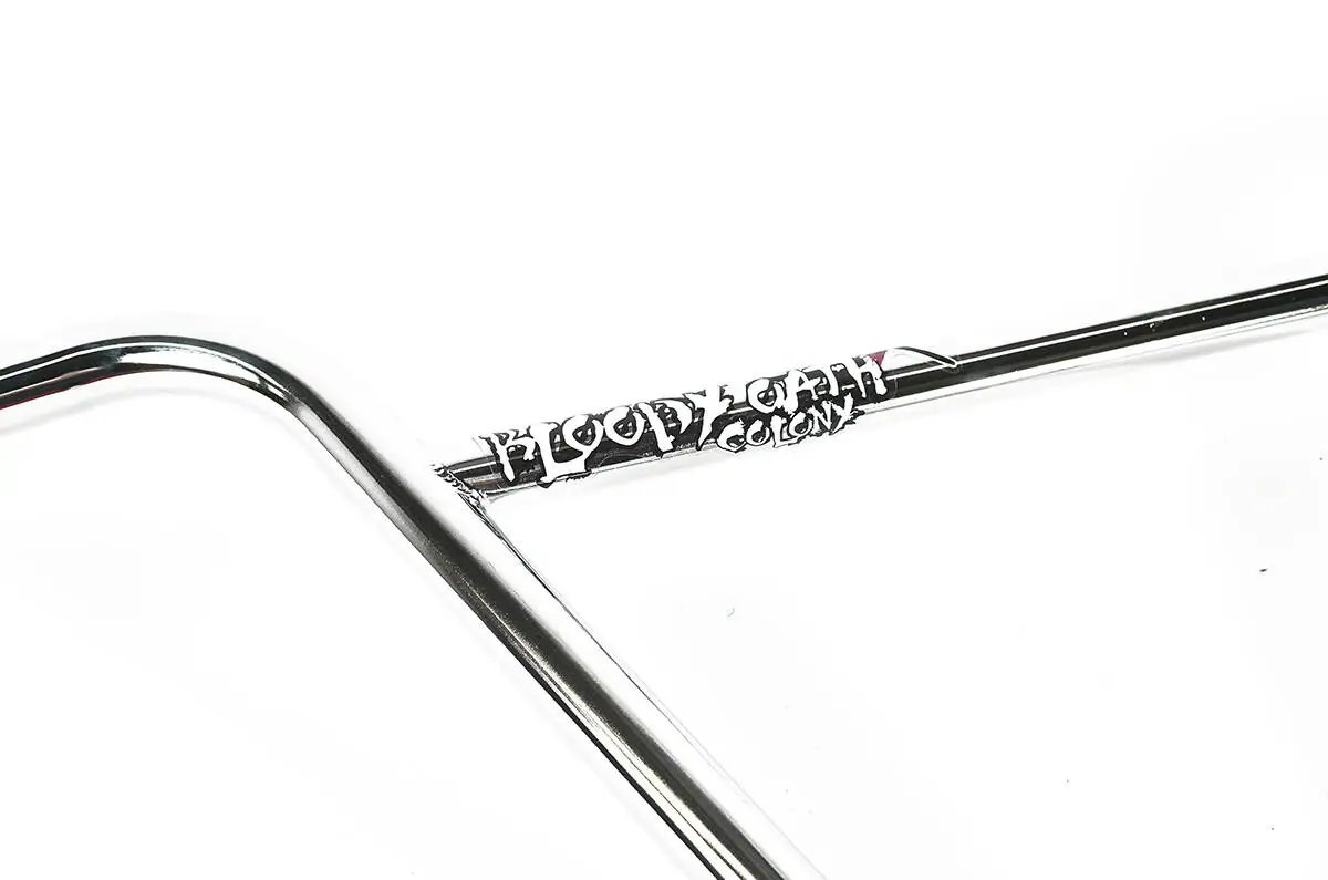 Colony Bloody Oath jsou výkonná řídítka určená pro freestyle BMX kola. Aby bylo dosaženo konstrukce, která je zároveň odolná a lehká, jsou řídítka vyrobena z crmo ocel 4130 (chromoly). Konstrukce se dvěma kusy trubek dodává těmto Colony řídítkům čistý a klasický vzhled. Vzhledem k šířce 30" budou tato řídítka vhodná pro jezdce se širokými rameny. Standardní průměr představce 22,2 mm se hodí pro všechny objímky stejné velikosti.
