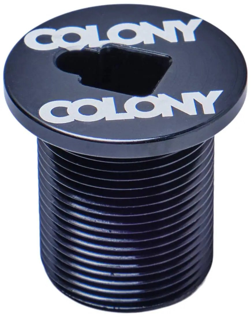 The BMX Fork Top Cap Bolt by Colony is a replacement top bolt for your fork. It's made from light and solid 7075-T6 alloy and is installed with a 3/8" (10mm) socket wrench. It comes with Colony logo print and a built-in slot for the front-brake cable.