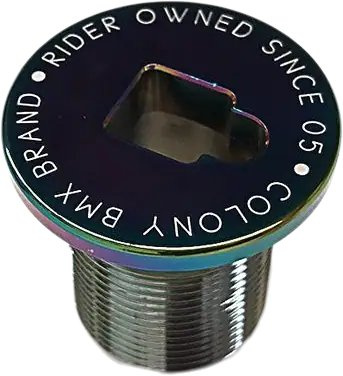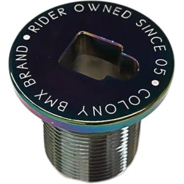 The BMX Fork Top Cap Bolt by Colony is a replacement top bolt for your fork. It's made from light and solid 7075-T6 alloy and is installed with a 3/8" (10mm) socket wrench. It comes with Colony logo print and a built-in slot for the front-brake cable.