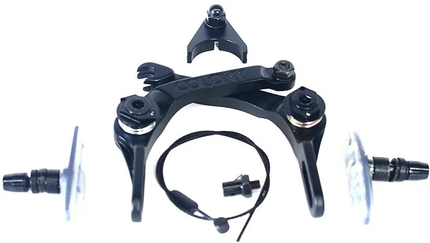 The Brethren BMX Brake Kit by Colony is a u-brake that can be installed both in front or at the rear end. If you're going to install it in the front, make sure you have a brake-compatible fork with integrated brake mounts.
