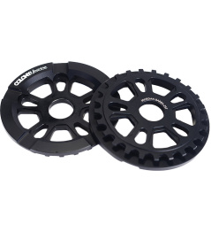 Colony Menace Guard je vysoce výkonný BMX převodník pro freestyle kola. Dostupný ve verzích 25T a 28T. Pokud chcete dosáhnout vyšších maximálních rychlostí, vyberte si větší převodník s více zuby. Pokud však chcete snadnější šlapání a lepší akceleraci, pak byste měli zvolit menší převodník. Tento Colony převodník je navržen s 24mm středovou dírou a otvorem pro šroub, ale díky přiloženým adaptérům je vhodný i pro 19mm a 22mm montáž.