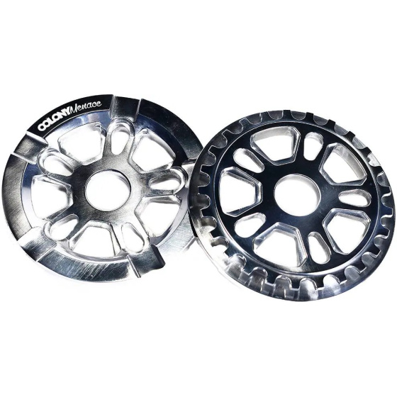 Colony Menace Guard je vysoce výkonný BMX převodník pro freestyle kola. Dostupný ve verzích 25T a 28T. Pokud chcete dosáhnout vyšších maximálních rychlostí, vyberte si větší převodník s více zuby. Pokud však chcete snadnější šlapání a lepší akceleraci, pak byste měli zvolit menší převodník. Tento Colony převodník je navržen s 24mm středovou dírou a otvorem pro šroub, ale díky přiloženým adaptérům je vhodný i pro 19mm a 22mm montáž.