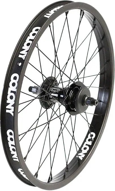 Toto je Colony Pintour 20" zadní kolo pro freestyle BMX kola. Colony navrhla Pintour 20" s dvoustěnným ráfkem pro jezdce, kteří potřebují zadní kolo, které zvládne vertikální a boční dopady u triků a skoků. Náboj freecoaster umožňuje jízdu dozadu bez šlapání, takže je ideální pro zvládnutí fakie triků. Uzavřená ložiska jsou nenáročná na údržbu a jsou odolná vůči nečistotám, takže toto Colony zadní kolo je ideální pro venkovní použití.