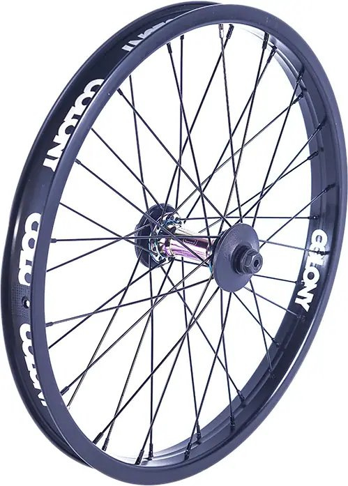Toto je Colony Pintour 20" přední kolo pro freestyle BMX kola. Díky dvoustěnnému ráfku na Pintour 20", se Colony snažila poskytnout pevná a zároveň lehká kola, aby jezdci mohli provádět triky a skoky bez snadného ohýbání ráfků. Uzavřená ložiska jsou nenáročná na údržbu a jsou odolná vůči nečistotám, takže toto Colony přední kolo je ideální pro venkovní použití.
