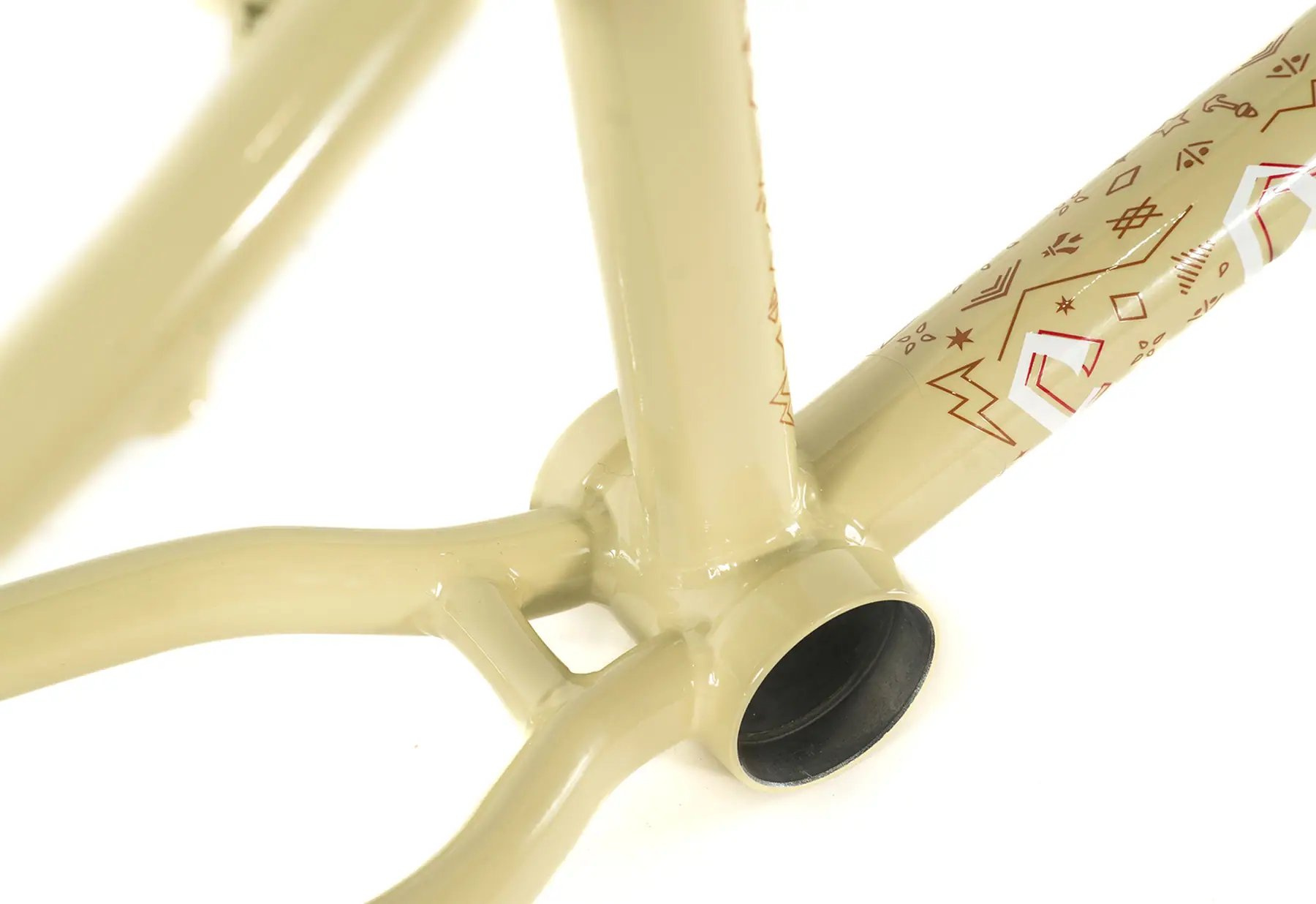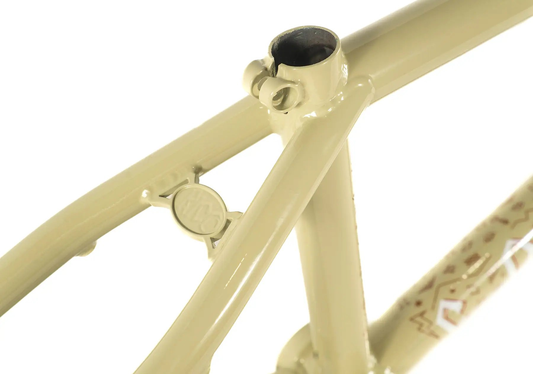 Rám je vyroben z pevného chromolybdenového materiálu 4130, má tepelně zpracovanou hlavovou trubku a dropouty a navařené dvojitě vyřezávané klíny na spodní trubce.