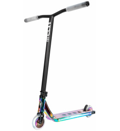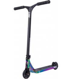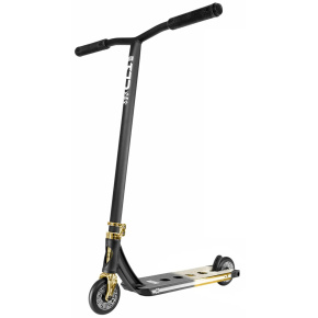 U této freestyle koloběžky vás rozhodně překvapí řídítka, která jsou totiž dvojdílná. Řídítka jsou ocelová a oba díly se smontují jedním šroubem z vrchu. Výška řídítek je 560 mm a šířka řídítek je 520 mm. Koloběžka drží pohromadě díky IHC kompresnímu systému, hliníkové vidlici a dvoušroubové objímce.
