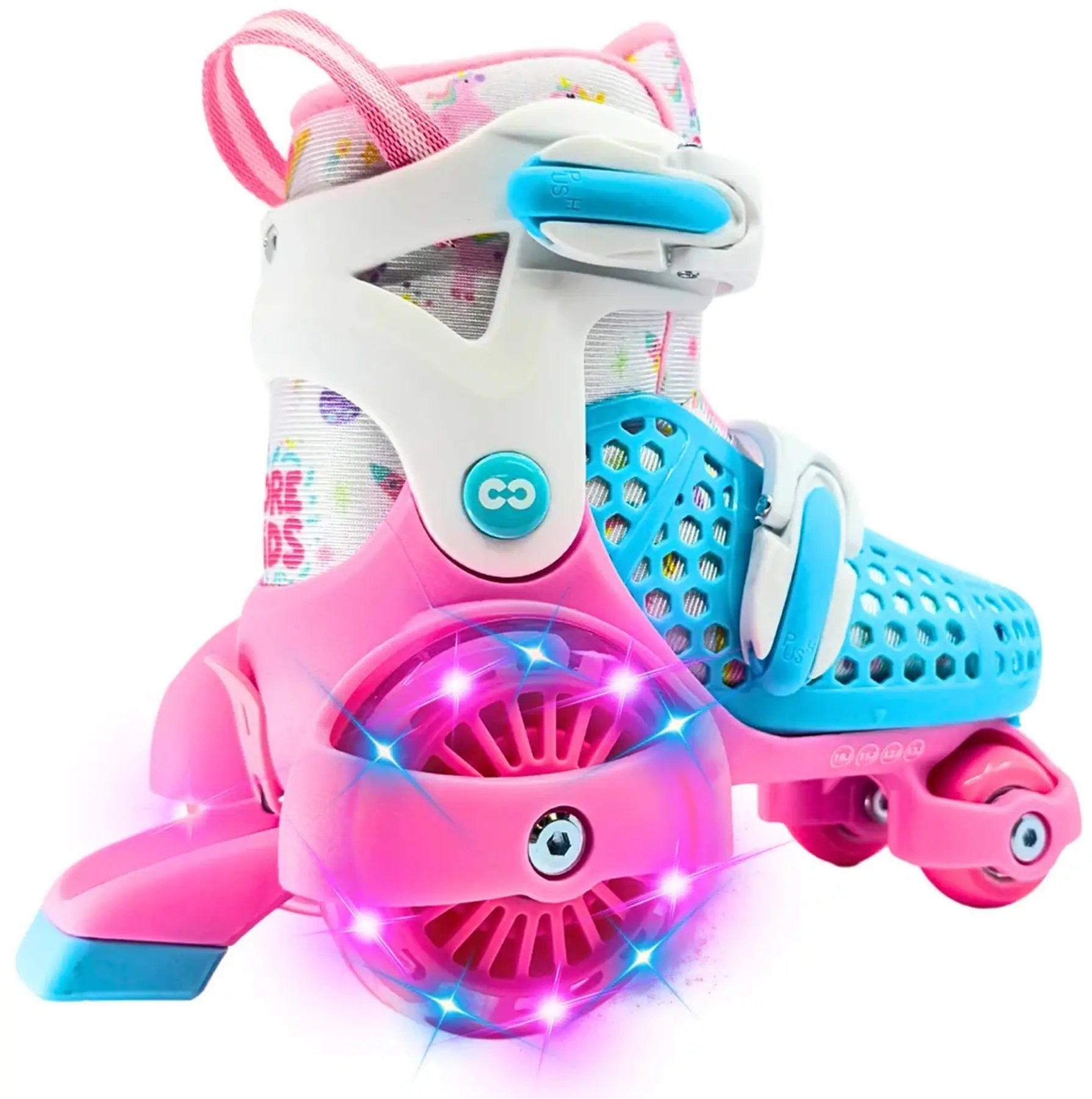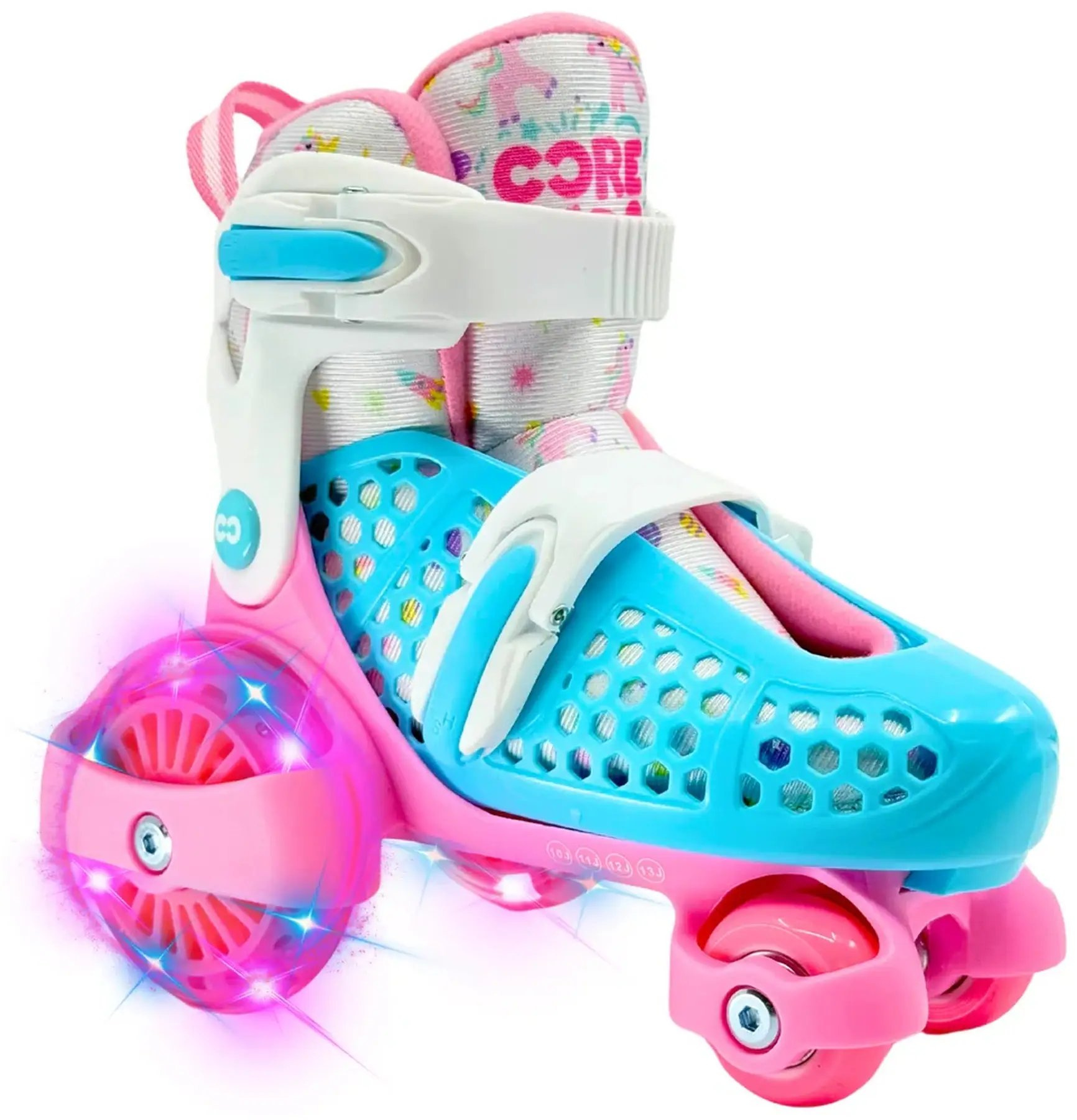 Díky nastavitelným velikostem a pohodlné, robustní konstrukci jsou tyto brusle CORE Kids ideální volbou pro rostoucí nohy. Mikroregulační kolečko s otočným zámkem zajišťuje pevné a pohodlné uchycení a svítící LED kolečka (bez nutnosti baterií) dodávají bruslím další nádech zábavy. Rukojeť pro přenášení usnadňuje přepravu těchto bruslí, ať už se vaše dítě vydá kamkoli.
