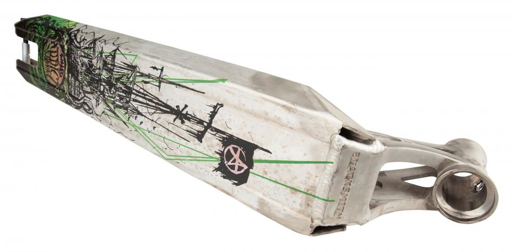 Perfektní deska do skateparku od legendární značky Addict. Blacksmith desky jsou signature modely od známých OG jezdců, kteří byli na začátku Scooteringu na světě. Deska je kompatibilní s 24mm šířkou kolečka i 30mm šířkou.