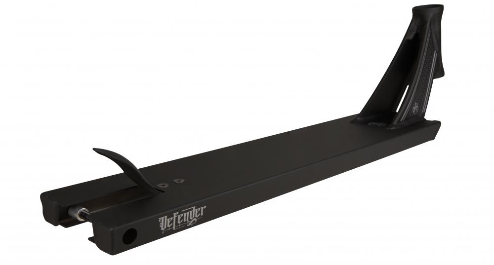 Addict Defender 3.0 patří k nejvíce odolným deskám na street. Rozměry desky jsou 550x127 mm a footspace (místo na nohy) je 375 mm. Deska je vyráběna z jednoho kusu a materiálu Hliník se stupněm pevnosti T4. Do desky se vejdou kolečka o maximálním průměru 115 mm a o šířkách 24 a 30 mm. Na konci desky je usazená ocelová flex fender brzda.