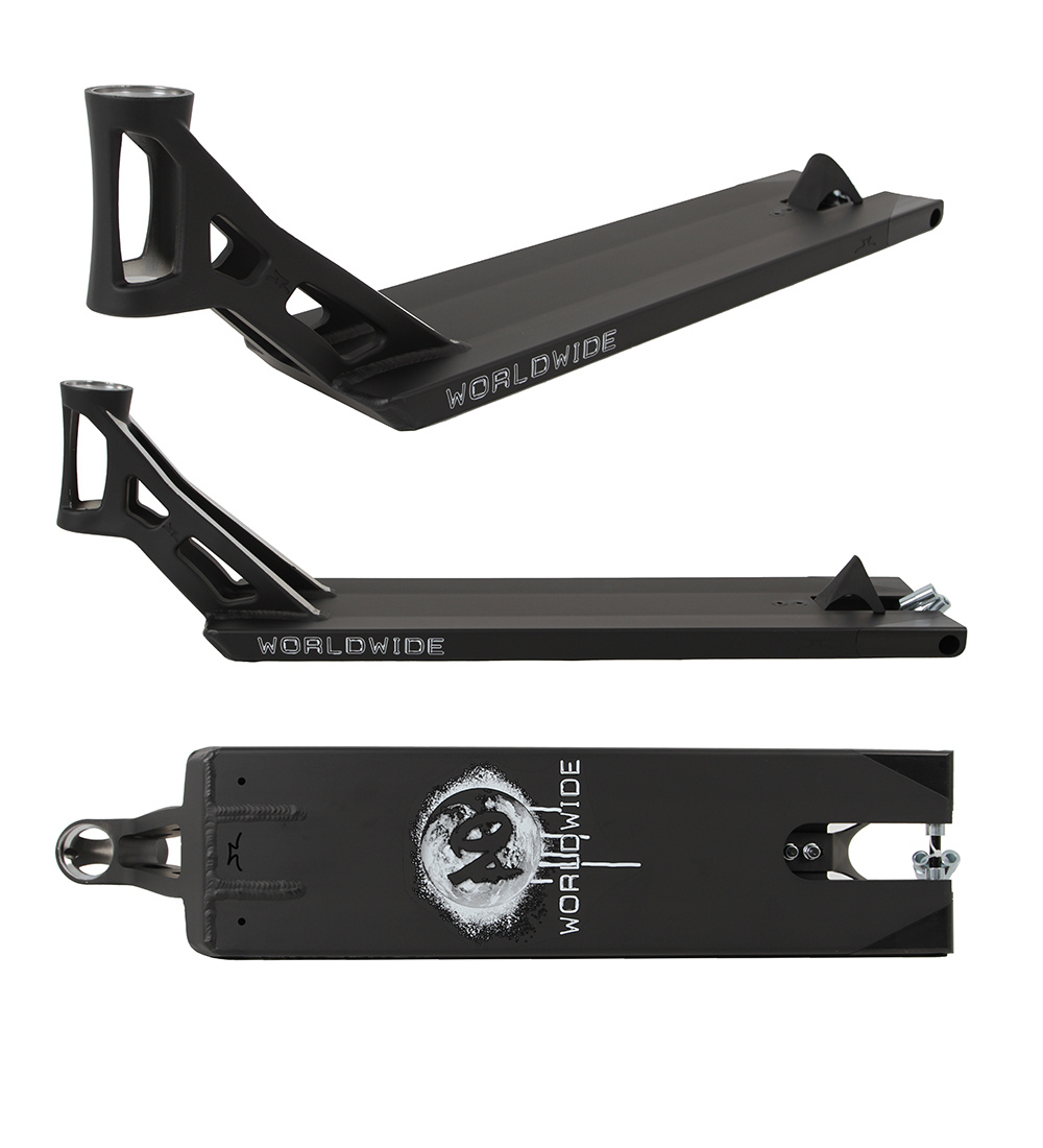Výborná deska s vyměnitelnými boxendy. Díky tomu je určená na všechny možné styly jízdy. Nasadíte boxendy (tvar desky se změní na hranatý) a hravě můžete vyrazit na street. Boxedny jsou z hliníku. Jsou tak odolnější než od konkurentů, kteří mají plastové boxendy. Krk desky je z jednoho kusu a kovaný za studena. Díky tomu deska je odolnější, pevnější v krku. Spodek desky je hladký. Lepší pro grindy. Vhodná pro náročné jezdce, kteří jezdí oba styly.