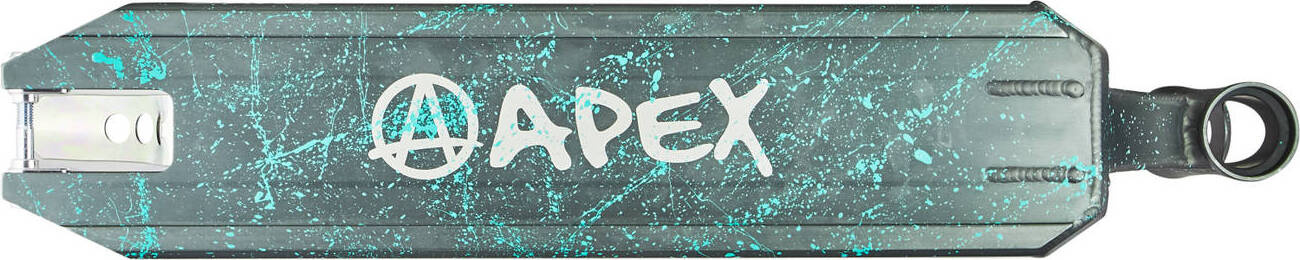 Australská značka Apex, která vyrábí nejlepší desky na trhu. Hlavní výhodou a jako jediní mají dvojitý svar na rizikových místech. Délka desky je 49 cm a šířka 11,4 cm. Tudíž je deska vhodná pro park jezdce a hlavně pro kickless mástry.