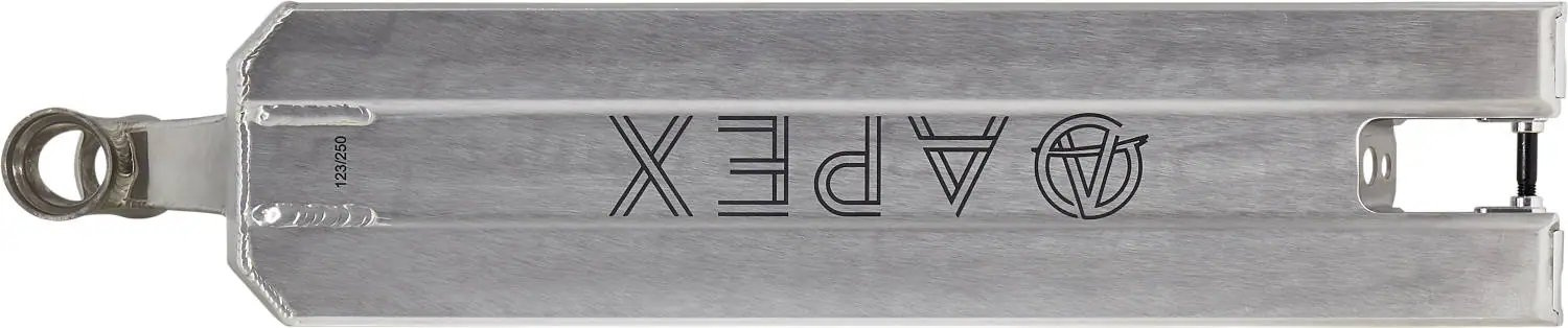 Australská značka Apex, která vyrábí nejlepší desky na trhu. Hlavní výhodou a jako jediní mají dvojitý svar na rizikových místech. Délka desky je 51 cm a šířka 12,7 cm. Tudíž je deska vhodná pro park jezdce a hlavně pro kickless mástry.