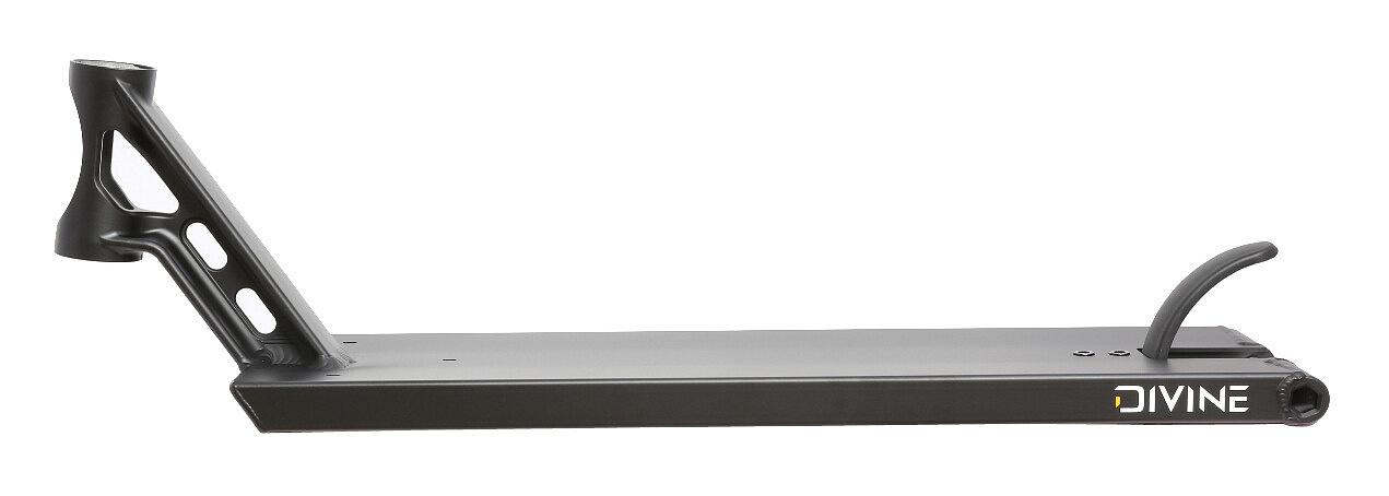 Výborná, street deska od českého výrobce Divine. Doporučujeme všem street jezdcům, kteří chtějí kvalitní, lehkou desku se super rozměry. Deska má plastovou brzdičku, která má šrouby pro imbus 6. Díky tomu jen tak lehce nestrhnete hlavičku šroubku. Rozměry jsou krásných 560 mm na délku a 165 mm na šířku. Krk desky je z jednoho kusu, kovaný. Díky tomu krk je pevnější a nepraská u headsetu s nádherným designem. Deska je pro kolečka až 120 mm se šířkou 24 mm.