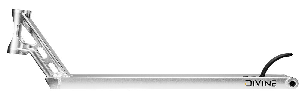 Výborná, street deska od českého výrobce Divine. Doporučujeme všem street jezdcům, kteří chtějí kvalitní, lehkou desku se super rozměry. Deska má plastovou brzdičku, která má šrouby pro imbus 6. Díky tomu jen tak lehce nestrhnete hlavičku šroubku. Rozměry jsou krásných 580 mm na délku a 153 mm na šířku. Krk desky je z jednoho kusu, kovaný. Díky tomu krk je pevnější a nepraská u headsetu s nádherným designem. Deska je pro kolečka až 120 mm se šířkou 24 mm.