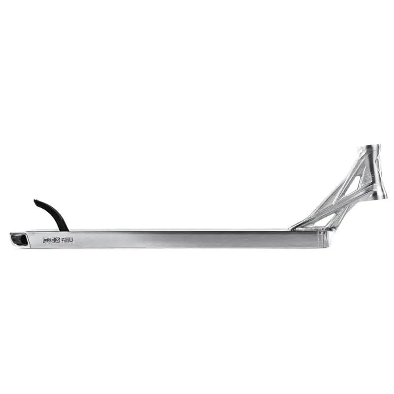 Nová generace desek Ethic Lindworm V4 konečně dorazila už i k nám do Scootshopu a musíme říct že se opravdu povedla. Deska vyniká svým nadčasovým designem a kvalitou. V poměru rozměrů a hmotnosti desky musíme uznat že se to Ethicu opravdu povedlo, deska váží krásných 1890 gramů. Rozměry desky jsou 580 mm na délku, 150 mm na šířku a místo pro nohy/footspace je 400 mm. Krk desky je jednodílný a dělaný pro integrované hlavové složení. Díky zakončení desky ve tvaru Box-cut, se vám budou lépe jezdit grindy na deskách a zábradlích. Do desky se vejdou jak 8 mm tak 12 mm osičky a kolečka až o maximální velikosti 125 x 30 mm. Na konci desky naleznete plastovou bezpružinkovou flex fender brzdu. V balení naleznete desku, 8 i 12 mm osičku a spacery na obě osičky.
