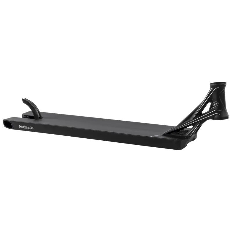 Nová generace desek Ethic Lindworm V4 konečně dorazila už i k nám do Scootshopu a musíme říct že se opravdu povedla. Deska vyniká svým nadčasovým designem a kvalitou. V poměru rozměrů a hmotnosti desky musíme uznat že se to Ethicu opravdu povedlo, deska váží krásných 2000 gramů. Rozměry desky jsou 580 mm na délku, 170 mm na šířku a místo pro nohy/footspace je 380 mm. Krk desky je jednodílný a dělaný pro integrované hlavové složení. Díky zakončení desky ve tvaru Box-cut, se vám budou lépe jezdit grindy na deskách a zábradlích. Do desky se vejdou jak 8 mm tak 12 mm osičky a kolečka až o maximální velikosti 125 x 30 mm. Na konci desky naleznete plastovou bezpružinkovou flex fender brzdu. V balení naleznete desku, 8 i 12 mm osičku a spacery na obě osičky.