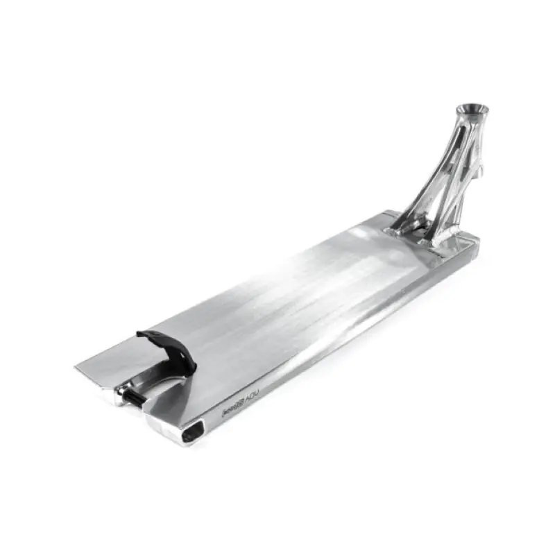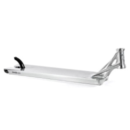 Nová generace desek Ethic Lindworm V4 konečně dorazila už i k nám do Scootshopu a musíme říct že se opravdu povedla. Deska vyniká svým nadčasovým designem a kvalitou. V poměru rozměrů a hmotnosti desky musíme uznat že se to Ethicu opravdu povedlo, deska váží krásných 2000 gramů. Rozměry desky jsou 600 mm na délku, 160 mm na šířku a místo pro nohy/footspace je 420 mm. Krk desky je jednodílný a dělaný pro integrované hlavové složení. Díky zakončení desky ve tvaru Box-cut, se vám budou lépe jezdit grindy na deskách a zábradlích. Do desky se vejdou jak 8 mm tak 12 mm osičky a kolečka až o maximální velikosti 125 x 30 mm. Na konci desky naleznete plastovou bezpružinkovou flex fender brzdu. V balení naleznete desku, 8 i 12 mm osičku a spacery na obě osičky.