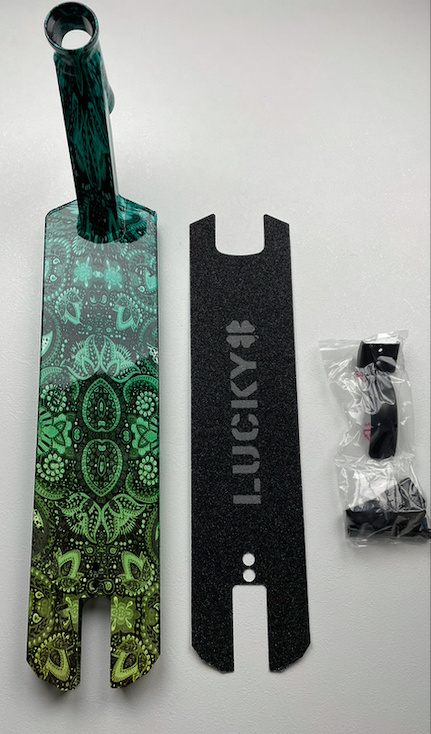 Lucky si pro rok 2022 připravilo facelift již zajetého modelu Prospect. Modely Prospect 2022 jsou určeny primárně pro mírně pokročilé a starší začátečníky do skateparku. Hmotnost desky je pouhých 1400 gramů což je adekvátní vůči rozměrům. Deska měří 495 mm na délku, 122 mm na šířku a footspace je 360 mm. Do desky se vejdou kolečka o maximálních rozměrech 120 x 24 mm. Deska je svařovaná ze dvou dílů a materiál je hliník 6061 se stupněm pevnosti T6. Na konci desky je ocelová bezpružinková flex fender brzda.