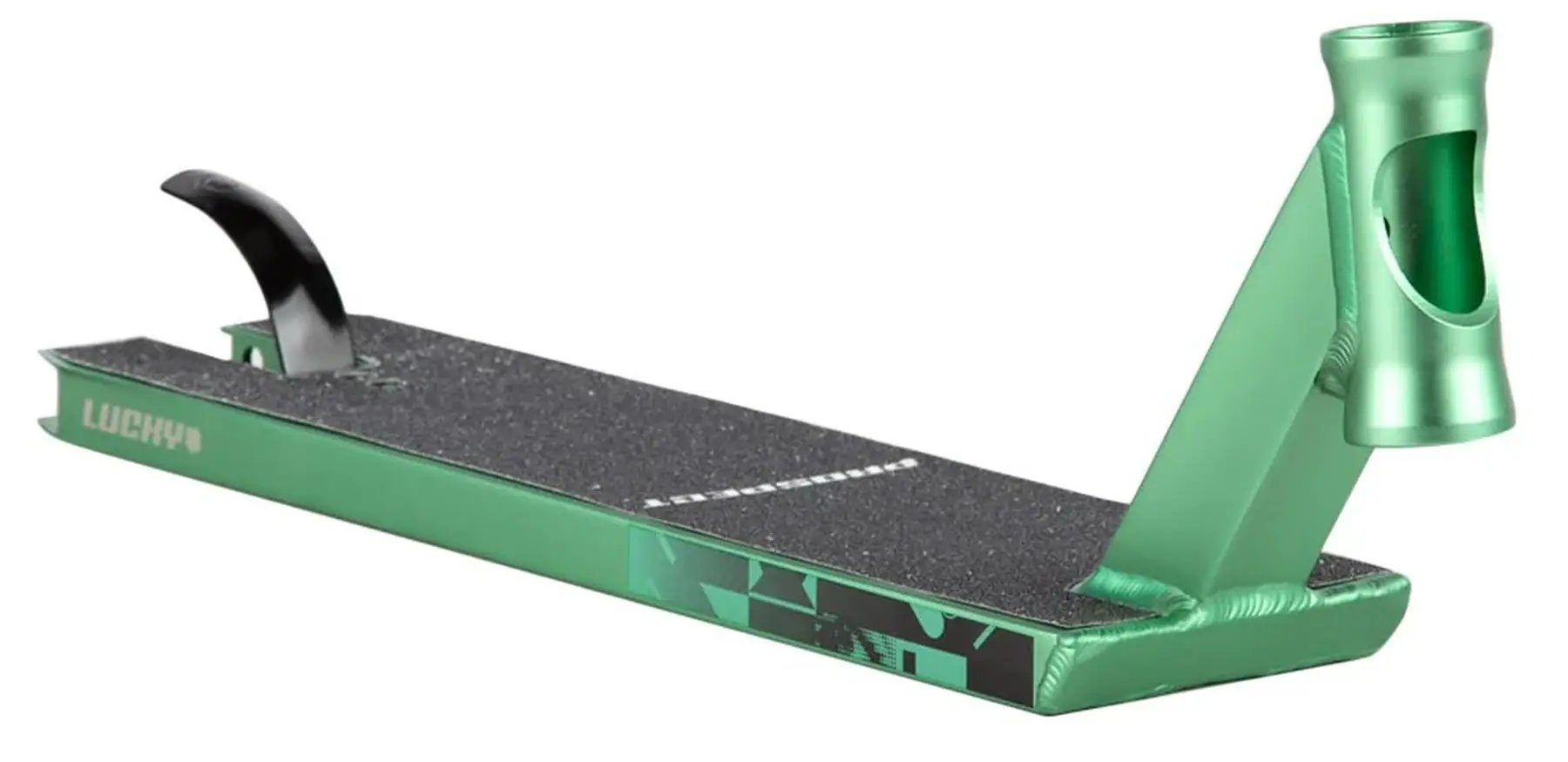 Lucky si pro rok 2022 připravilo facelift již zajetého modelu Prospect. Modely Prospect 2025 jsou určeny primárně pro mírně pokročilé a starší začátečníky do skateparku. Hmotnost desky je pouhých 1220 gramů což je adekvátní vůči rozměrům. Deska měří 495 mm na délku, 127 mm na šířku a footspace je 360 mm. Do desky se vejdou kolečka o maximálních rozměrech 120 x 24 mm. Deska je svařovaná ze dvou dílů a materiál je hliník 6061 se stupněm pevnosti T6. Na konci desky je ocelová bezpružinková flex fender brzda.