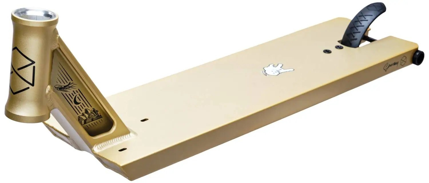 Výborná, dokonalá deska na street! Deska má hranatý tvar s pegy, které ladí s deskou. Díky pegům vám grindy půjdou daleko lépe. Grindraily jsou hladké. zase lepší pro grindy. Výhodou této desky je, že můžete použít šířku koleček 24 nebo 30mm. Také osičky buď 8mm (standard) nebo 12mm (12STD). Brzda je plastová.