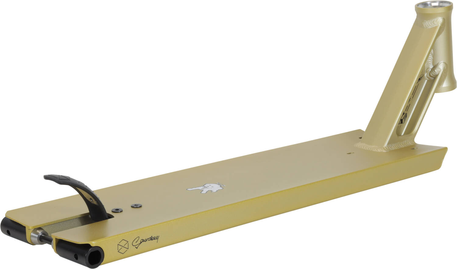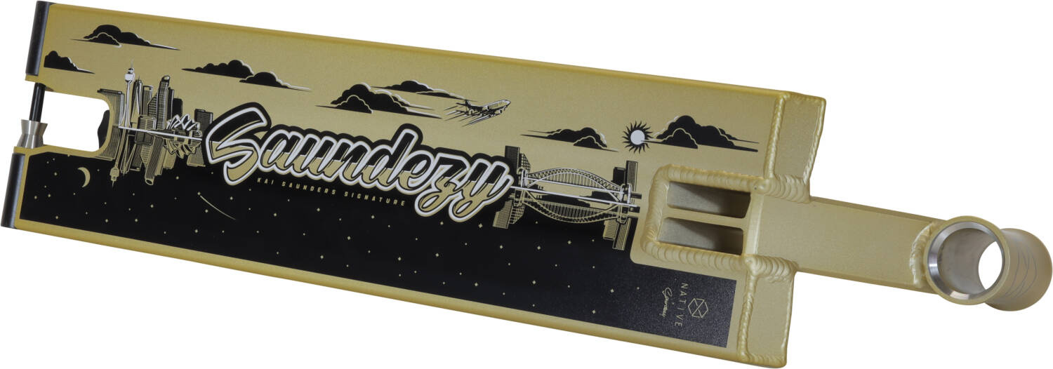 Výborná, dokonalá deska na street! Signature model od známého jezdce Kai Saunders. Deska má hranatý tvar s pegy, které ladí s deskou. Díky pegům vám grindy půjdou daleko lépe. Grindraily jsou hladké. zase lepší pro grindy. Výhodou této desky je, že můžete použít šířku koleček 24 nebo 30mm. Také osičky buď 8mm (standard) nebo 12mm (12STD). Brzda je plastová.