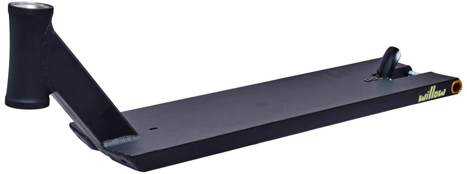 North Willow deska je mokrý sen každého streetera. Deska má super rozměry na street, na délku měří 546 mm (21.5") a na šířku je to klasická šestka (152 mm (6")). Footspace desky je rovných 400 mm. Materiál desky je kvalitní hliník 6061 se stupněm pevnosti T6, deska je vyráběna z jednoho kusu. Konec desky je takzvaný Box-end, který je specifický pro desky na street. Do desky se vejdou kolečka o maximálních rozměrech 125 x 30 mm.
