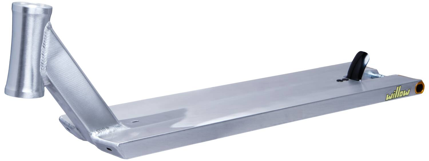 North Scooters je kanadská značka zaměřená primárně na streetové ježdění. Hmotnost této desky je 2020 gramů což je super vůči rozměrům desky, které jsou 22.5"/572 mm na délku, 6"/152 mm na šířku a 426 mm jako footspace (místo pro nohy). Materiál desky je kvalitní Hliník a jelikož je deska vyráběna z jednoho kusu tak není na žádném místě oslabená a vydrží pořádnou dávku zátěže. Do desky budou pasovat kolečka o maximálním průměru a šířce 120x30 mm. Na konci desky je ocelový nepohyblivý fender.