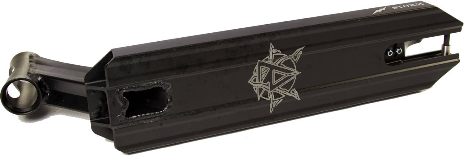 Velmi lehká a skvěle vypadající parková deska od značky Revolution Supply. Deska je určená pro začátečníky a středně pokročilé do skateparku, kam se deska perfektně hodí. Váha desky je 1290 gramů, tudíž se s ní perfektně manipuluje. Rozměry desky jsou 495 x 120 mm. Deska je konkávní. Do desky se vejdou kolečka až o velikosti 120 mm s šířkou 24 mm. Deska je jednodílná z hliníku se stupňem pevnosti T6. Úhel desky je 82.5° s celkovou délkou tuby krku desky 110 mm. Do desky pasuje klasický integrovaný headset. Na desce je osazena bezpružinková flexibilní brzda.