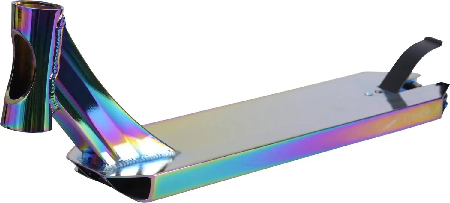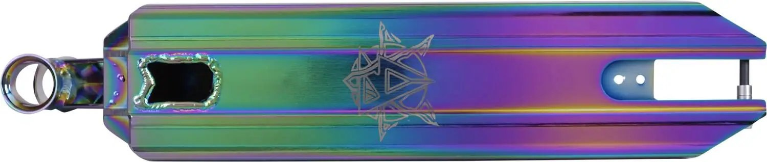 Velmi lehká a skvěle vypadající parková deska od značky Revolution Supply. Deska je určená pro začátečníky a středně pokročilé do skateparku, kam se deska perfektně hodí. Váha desky je 1290 gramů, tudíž se s ní perfektně manipuluje. Rozměry desky jsou 495 x 120 mm. Deska je konkávní. Do desky se vejdou kolečka až o velikosti 120 mm s šířkou 24 mm. Deska je jednodílná z hliníku se stupňem pevnosti T6. Úhel desky je 82.5° s celkovou délkou tuby krku desky 110 mm. Do desky pasuje klasický integrovaný headset. Na desce je osazena bezpružinková flexibilní brzda.