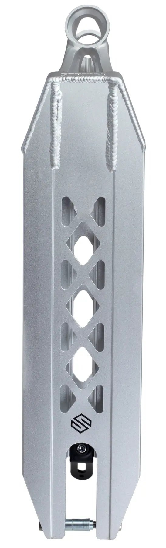 Nová deska je tady! Maximálně odlehčená a maximálně pevná. Výborná pro motače ve skateparku. Deska je vyrobená z odolného hliníku řady 6000 T6. Úhel desky je 83° díky tomu deska je lépe ovladatelná. Až 120 mm koleček se šířkou 24 mm můžete použít do této desky. Brzda je stylová, nylonová. Doporučujeme náročným jezdcům, kteří chtějí vyniknout ve sketparku.