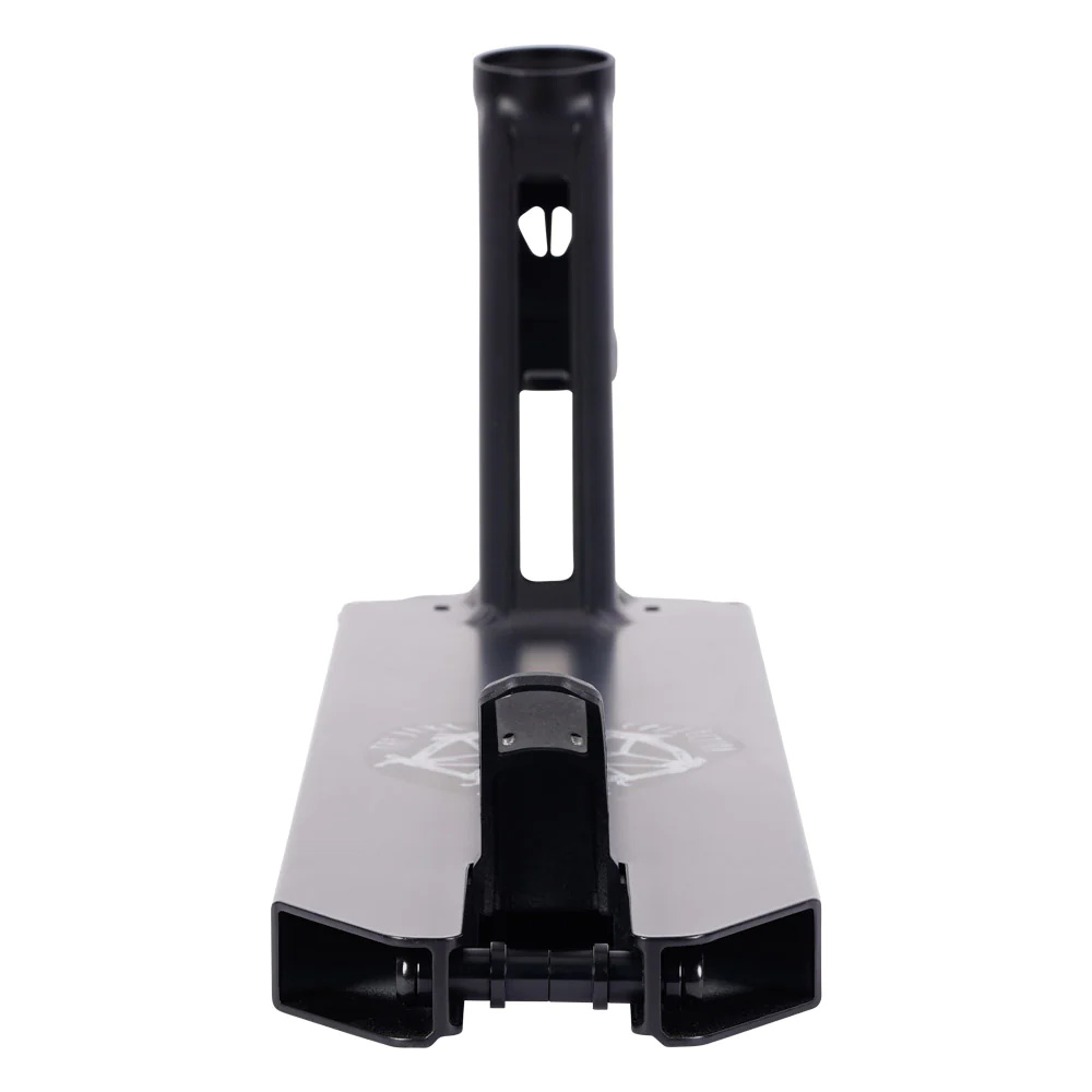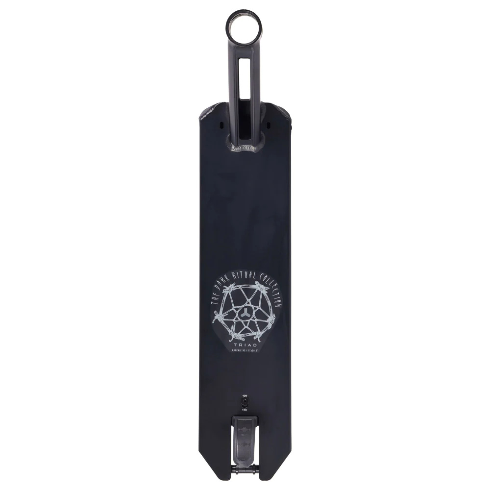 Lehká, pevná deska. Výhodou teto desky je materiál. Je vyrobená z 7000 série hliníku. Takže deska je odolnější. Doporučujeme všem náročnějším park jezdcům. Novinka této řady je krk desky. Ten je z jednoho kusu. Díky tomu deska je pevnější. Fender OFF brzda je skvělá kombinace pružné a nepružné (pevné) brzdy. Můžete se rozhodnout jeslti chcete jezdit Flex fender nebo fender. Tento systémpouze Triad.