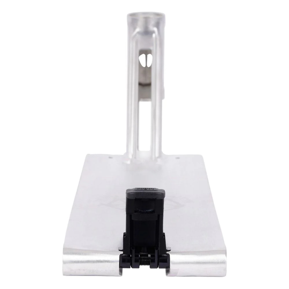 Lehká, pevná deska. Výhodou teto desky je materiál. Je vyrobená z 7000 série hliníku. Takže deska je odolnější. Doporučujeme všem náročnějším park jezdcům. Novinka této řady je krk desky. Ten je z jednoho kusu. Díky tomu deska je pevnější. Fender OFF brzda je skvělá kombinace pružné a nepružné (pevné) brzdy. Můžete se rozhodnout jestli chcete jezdit Flex fender nebo fender. Tento systémpouze Triad.