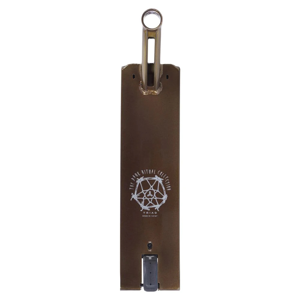 Lehká, pevná deska. Výhodou teto desky je materiál. Je vyrobená z 7000 série hliníku. Takže deska je odolnější. Doporučujeme všem náročnějším park jezdcům. Novinka této řady je krk desky. Ten je z jednoho kusu. Díky tomu deska je pevnější. Fender OFF brzda je skvělá kombinace pružné a nepružné (pevné) brzdy. Můžete se rozhodnout jestli chcete jezdit Flex fender nebo fender. Tento systém má pouze Triad.
