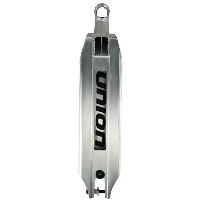Lotyšská značka Union představila momentálně NEJLEHČÍ DESKU NA TRHU! Tahle deska váží pod 1 kg díky čemuž je ideální volbou do skateparku. Deska měří 460 mm na délku, 120 mm na šířku a 325 mm na footspace. Do desky se vejdou kolečka o maximálním rozměru 110 x 24 mm. Materiál desky je Hliník 6061 se stupněm pevnosti T6. Na konci desky je plastová flex fender (pohyblivá) brzda