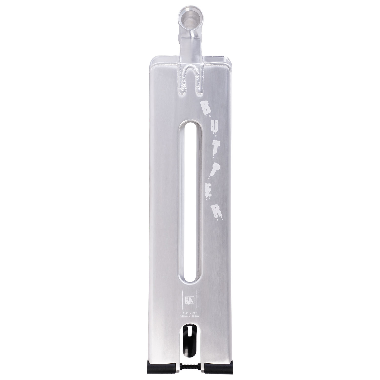 Deska Butter od značky Urban Artt překvapila svým jednoduchým ale za to perfektním vzhledem. Při výrobě desky se dávalo pozor na pevnost, proto jsou všechny sváry dělané na jedničku. Deska se vyrábí v rozměrech 21" x 5.5"/140 x 533mm, což je super jak na street tak i do skateparku. Hmotnost desky je pouhých 1,95kg. Úhel krku desky je 83°. Do desky se vejdou kolečka o maximálním rozměru: 125 x 30 mm. V balení dostanete jak plastovou flex fender brzdu, tak i mini fender, je pouze na vás co zvolíte.