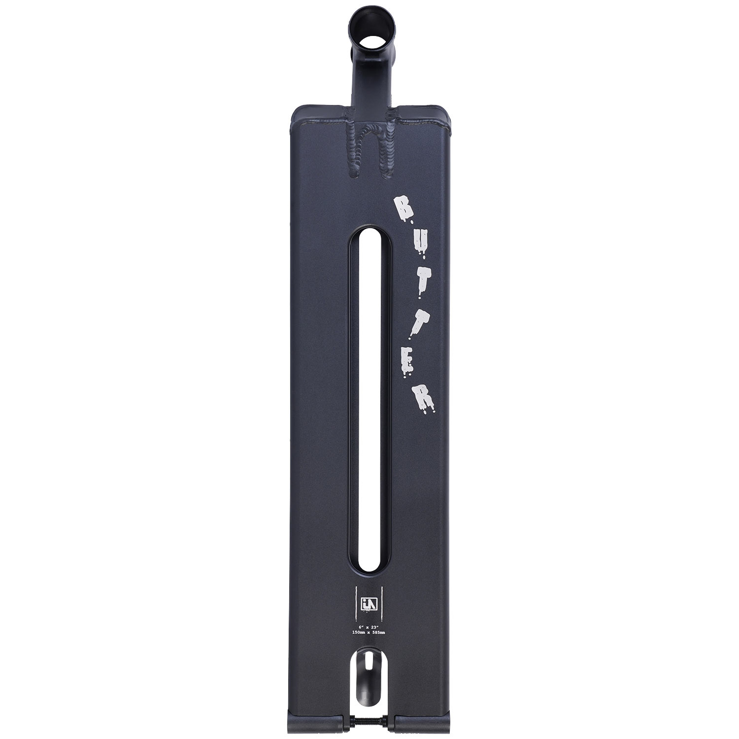 Deska Butter od značky Urban Artt překvapila svým jednoduchým ale za to perfektním vzhledem. Při výrobě desky se dávalo pozor na pevnost, proto jsou všechny sváry dělané na jedničku. Deska se vyrábí v rozměrech 23" x 6"/150 x 587mm, což je super jak na street tak i do skateparku. Hmotnost desky je pouhých 1,850kg. Úhel krku desky je 83°. Do desky se vejdou kolečka o maximálním rozměru: 125 x 30 mm. V balení dostanete jak plastovou flex fender brzdu, tak i mini fender, je pouze na vás co zvolíte.