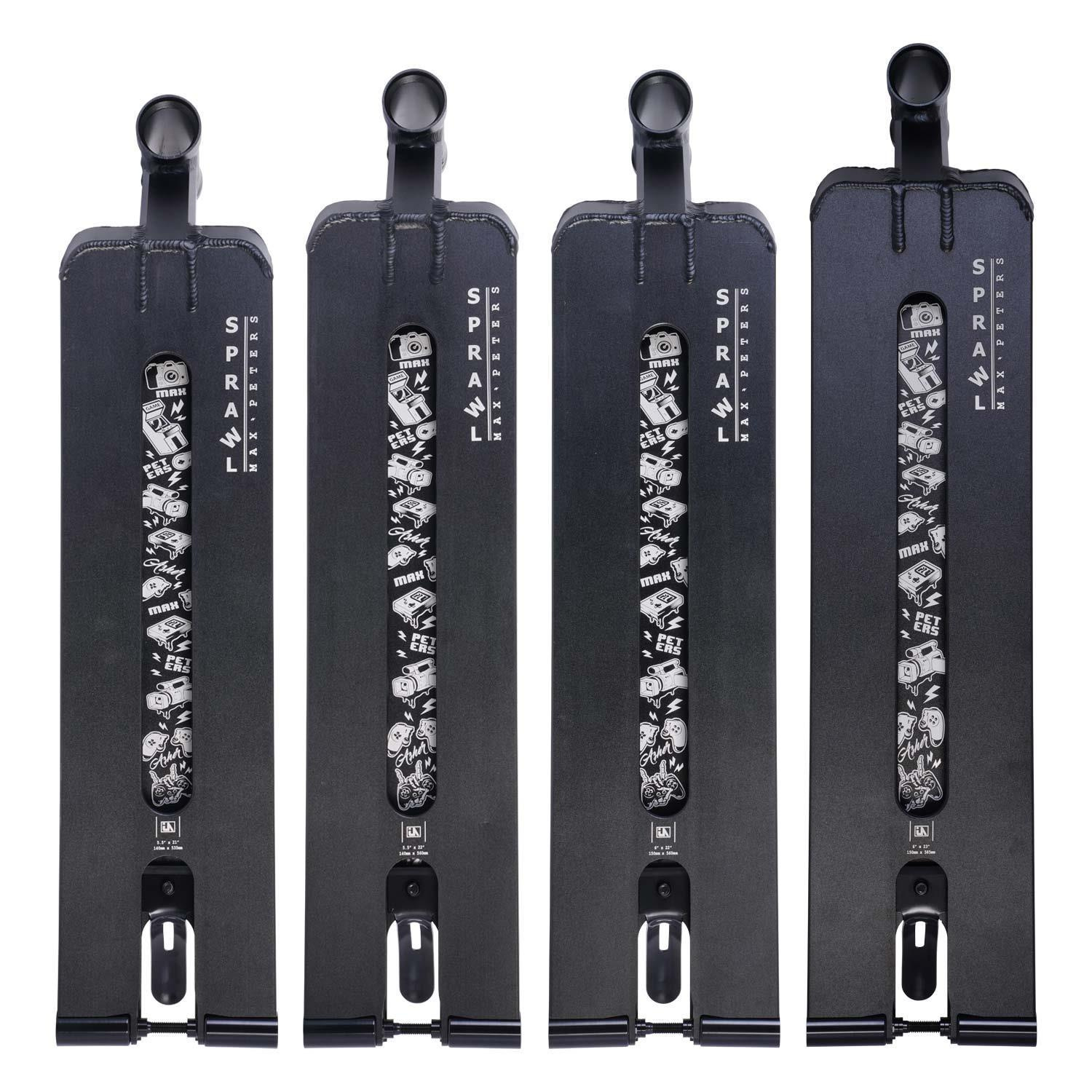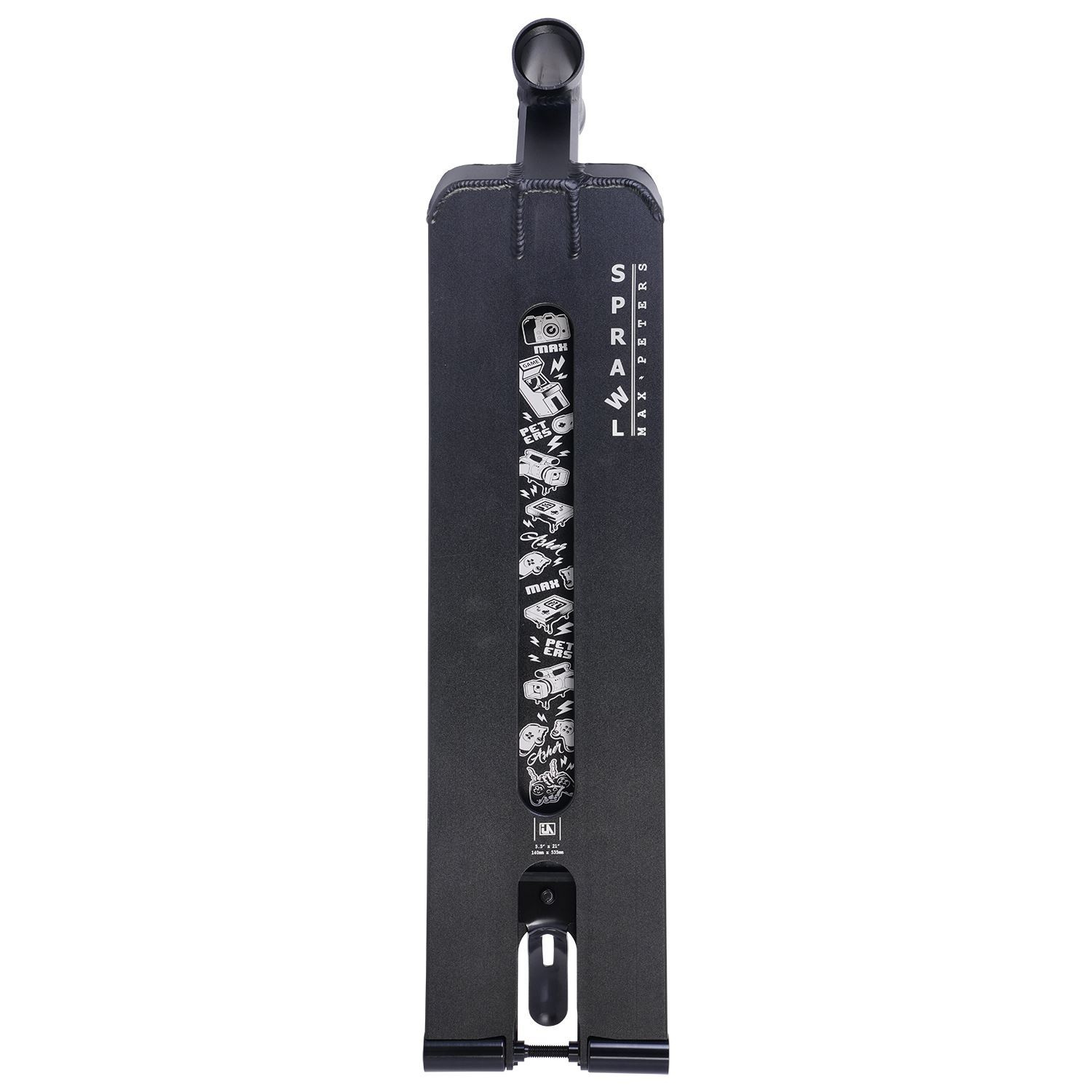 Výborná, lehká street deska od legendárního jezdce Max Peterse. Deska má hranatý tvar s integrovanými pegy. Díky tomu grindy jsou lehčí a plynulejší a lepe drží na railech. Také spodek je hladký. Lépe deska drží lépe při grindování. Krk desky je dvojdílný pro integorvané headsety. K desce dostanete dvě brzdy.