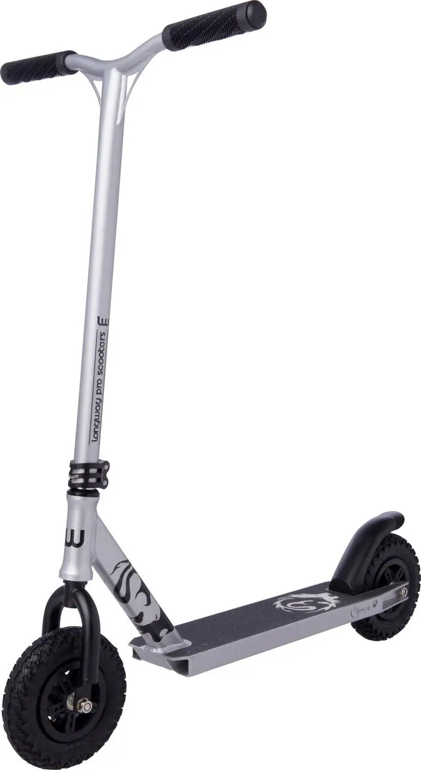 Nová, výborná dirt koloběžka. Koloběžka má kvalitní konstrukci. Jako například integrovaný headset, kvalitní nylonové kolečka s ABEC9 ložisky, HIC (oversize) řídítka atd. S koloběžkou můžete jezdit kdekoliv. Zvládne cyklostezky, dirt parky, štěrk. 200mm nafukovací kolečka absorbují nárazy a velké skoky. Výborné pro dirt skoky. Nosnost této koloběžky je 120kg!