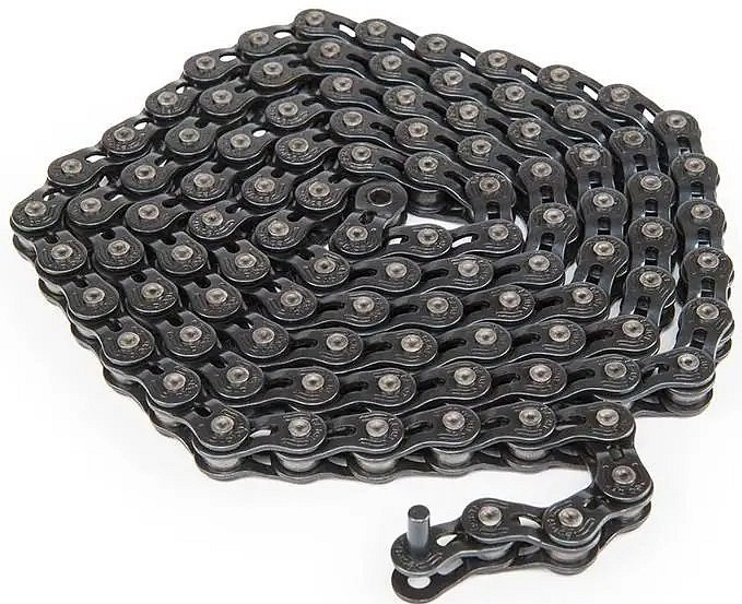 Ultra silné kolíky a pláty s výřezy pro snížení hmotnosti. Řetěz Stroke od Eclat se skládá ze 100 článků o rozměrech 1/2" x 1/8".
