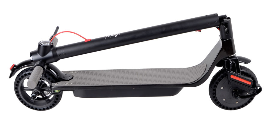 Baterii Li-Ion 7,5 Ah dobijete přenosnou nabíječkou ze zásuvky 220 V na plnou kapacitu za přibližně 5 hodin. S koloběžkou na jedno nabití ujedete až 25 km - při kratších cestách jí tak nemusíte pokaždé dobíjet. Celková vzdálenost může být kratší i delší; vždy závisí na hmotnosti jezdce, členitosti terénu, stylu jízdy, venkovní teplotě apod. Nouzově lze na koloběžce dojet odstrkováním i s vypnutým motorem.
