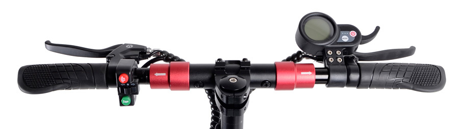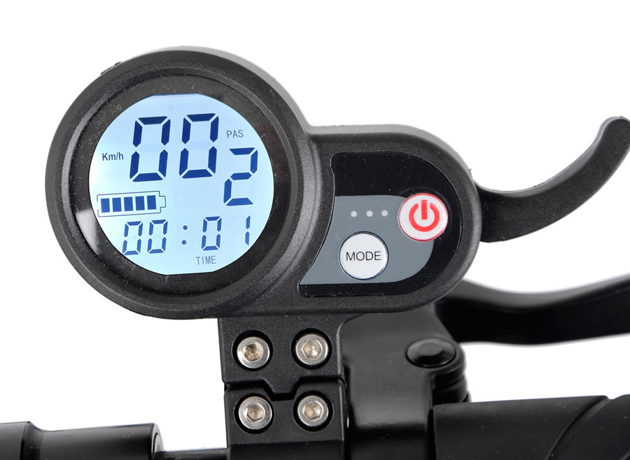 Na transreflexním displeji skvěle čitelným i na přímém slunci či v noci můžete sledovat aktuální stav baterie, aktuální rychlost, dobu jízdy a ujetou vzdálenost. USB portem zezadu displeje lze dokonce nabíjet váš mobilní telefon či tablet, a to buď za jízdy nebo při stojící koloběžce pomocí 2-hodinového časovače.